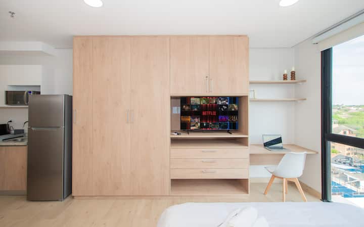 Одлична локација | Поглед кон сала за вежбање, базен и град | 200 Mbps