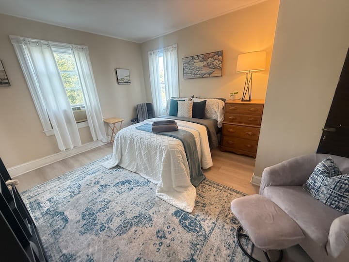 Престојувајте во удобна куќа лепенка во најпосакуваниот развој на Балтимор, Camden Crossing. Удобностите во собата вклучуваат свежо наместен кревет во целосна големина со двостран џамбо душек, 4 перници, 2 удобности, 3 декоративни мали перници, плакар, голем прозорец и паметен телевизор. Тивко соседство, во близина на автобуска станица.