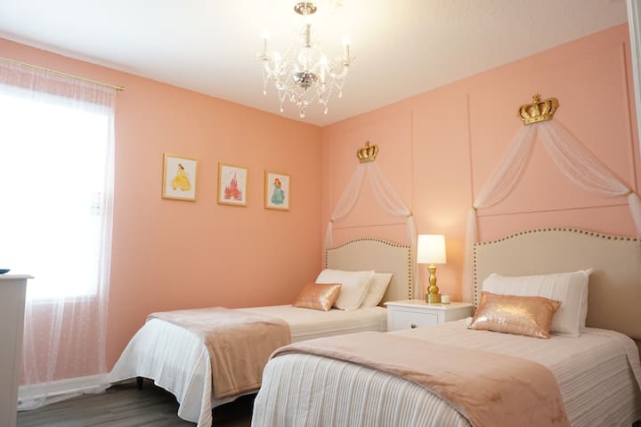 – Тема за принцезата со две спални соби - Џек и Џил Бат (2 двокреветни кревета)