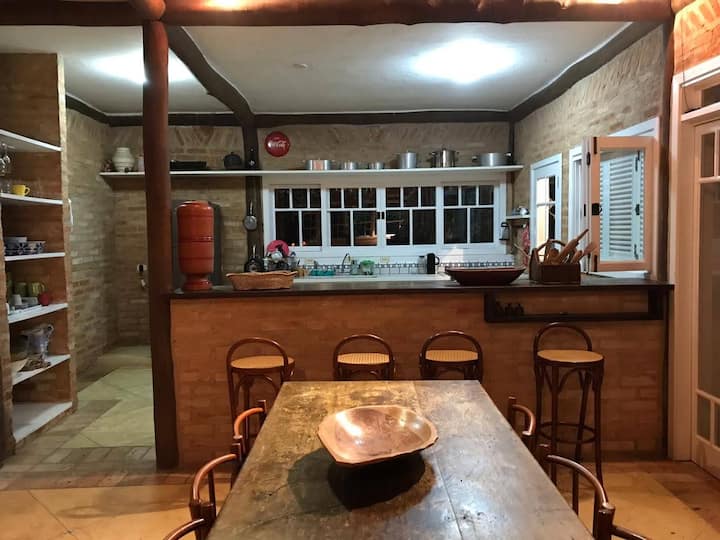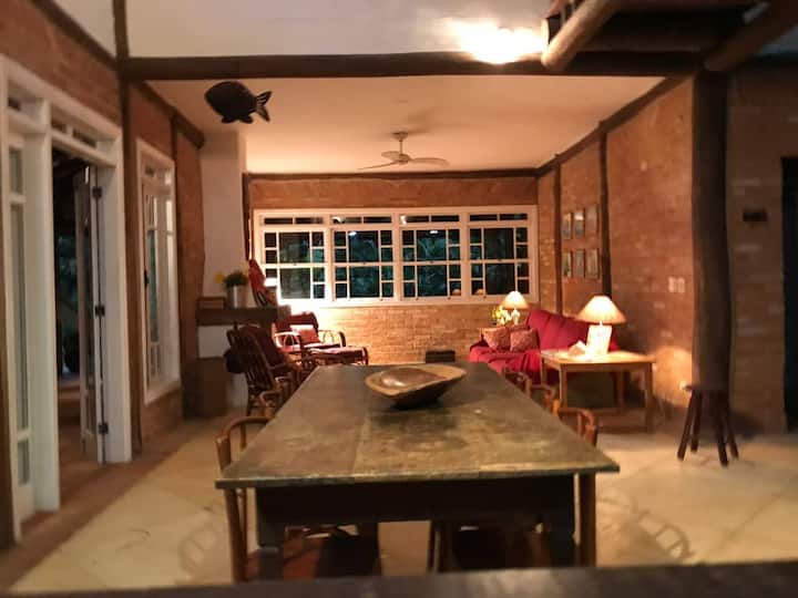 Двокатна куќа во кондоминиум во Toque Toque Pequeno, на само 3 минути пешачење од плажата. Располага со 4 спални соби (1 пристапно приземје), 3 бањи + тоалет, може да прими до 11 гости. Целосна кујна, простор за перење алишта, скара и рерна за пица. Трпезариски простор на отворено, потопен во природа. Вклучени се интернет и телевизија. Идеално за семејства или групи кои бараат удобност, спокојство и близина до морето.