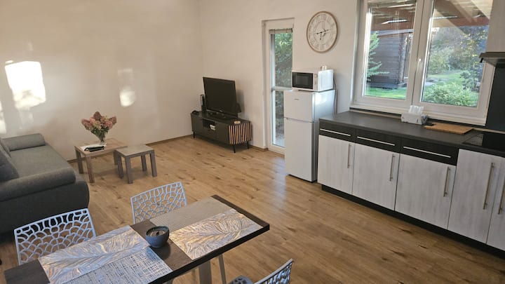 Нашата удобна и опремена викендица е идеално место за тивок одмор и полнење, без разлика дали сте на деловно патување или поминувате низ регионот. Имате комплетно опремена кујна и удобна спална соба каде што ќе спиете добро. Во дневната соба има кауч на спуштање за спиење, кој нуди флексибилни опции за сместување. Голема предност е нашата локација во непосредна близина на автопатот, што ќе ви овозможи да бидете во Оломоуц и Проштејов за само 5 минути. Надворешниот простор нуди приватна градина со тераса