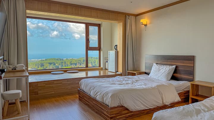 [Хамили Резорт] Панорамски поглед на океанот | Панорамски поглед на морето Аевол | Полн со емоции | Два одвоени кревета |