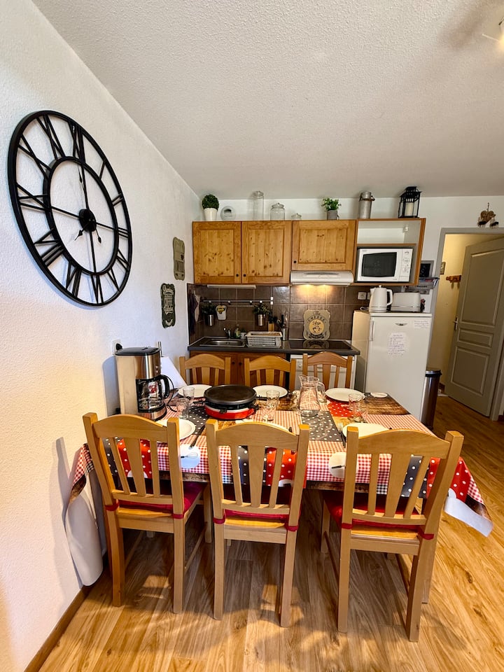 Нашиот топол и целосно опремен стан ве очекува за престој со семејството или пријателите, лето и зима. Станот е идеално лоциран во семејното одморалиште Албиез-Монтрон, на само неколку минути пешачење од падините и може да прими 6 лица.