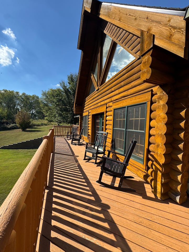 Побегнете во модерна колиба од трупци од 557 квадратни метри на 32 приватни хектари во близина на Колумбус, Индијана. Совршено за собири, има 4 апартмана со брачен кревет (king size) плус 2 семејни/прилагодливи спални соби – вкупно 6 спални соби/6 бањи, така што секој има простор и приватност. Создавајте незаборавни оброци во кујната на готвачот Викинг, гледајте филмови во собата со кревети на спрат или играјте бијл, пинг-понг и аркадни игри. Опуштете се во хидромасажната када, соберете се околу огништето или опуштете се на тремот кој го опкружува сместувањето – идеално место за собири, одмори и групни патувања.