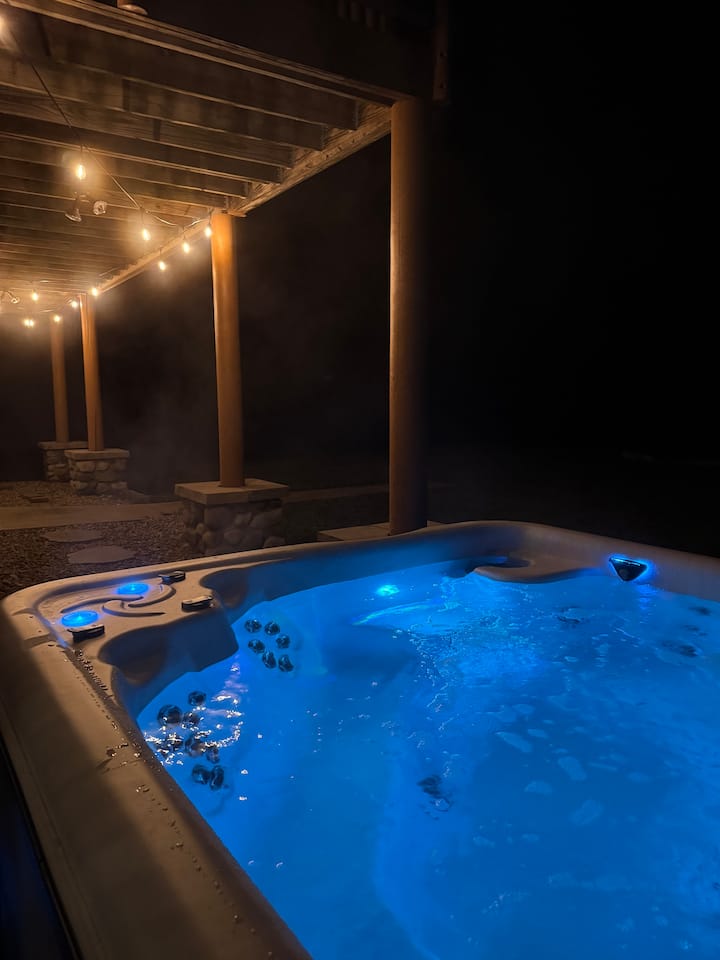 → Трем околу куќата – Сркајте кафе на утринското сонце или нишајте се на лулашката на тремот додека денот завршува.→ Џакузи под ѕвездите – Спа центар за 6 лица за опуштање на болни мускули или набљудување на ѕвездите доцна во ноќта.→ Собирно место на огништето – Сместете се на столчињата Адирондак, испечете смори и споделувајте приказни околу пукачкиот оган.→ Пространи палуби – Совршени за групни оброци, пијалоци на зајдисонце или едноставно дишење во тишината.→ 8 приватни хектари – Отворен простор за шетање, играње и истражување.Дозволете им на децата слободно да трчаат, да се собираат за игри на тревникот или да се искрадат за да уживаат во тивок агол од природата, целосно за себе.