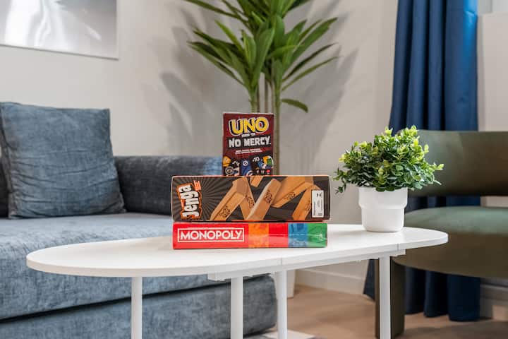 Модерен 2BR во близина на аеродром| Паркинг | Netflix | Игри