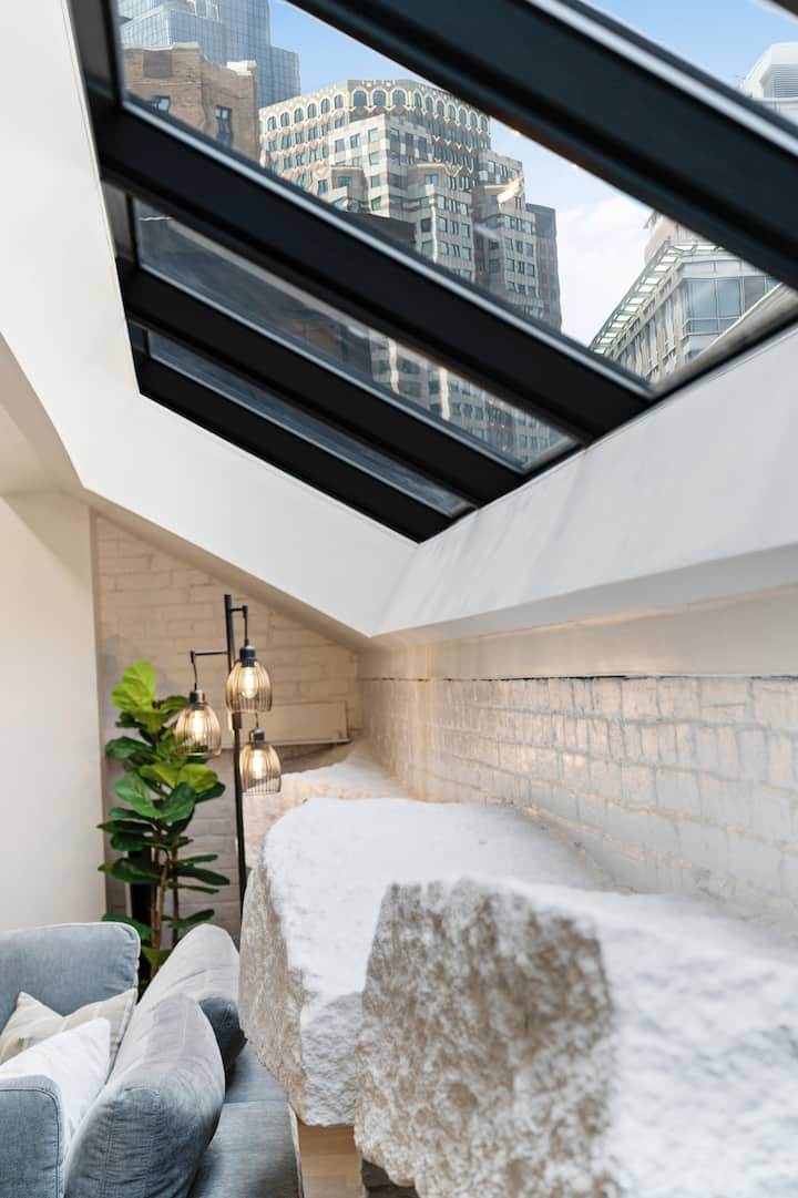 3 брачни и 3 брачни НОВИ кревета, мебел + апарати! Локацијата е во Норт Енд Бостон/Фајненшл Дистрикт. Адресата на новата зграда сѐ уште не се пополнува на Airbnb. Домаќинот ќе потврди пред да резервира дека знаете дека оваа локација е ВО ЦЕНТАРОТ НА ГРАДОТ