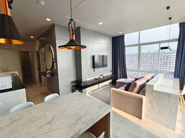 Pattaya Ocean View High Floor Two Room One Lobby Suite 203/24 Hours/Transfer Service in Bangkok/Jomtien Beach Night Market/Pool/Gym/Long Rental Promotion