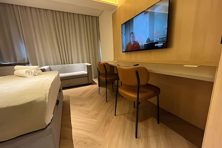 Овој комплетен стан, новоотворен во новата зграда, со целосно опремена кујна, ве сместува во срцето на Пињеирос, живописно и стилско соседство во Сао Паоло. Локацијата е неспоредлива: во близина на ефикасноста на Авенида Паулиста, софистицираноста на Оскар Фреир и со одлични врски со метрото преку станиците Клиникас и Сумаре.