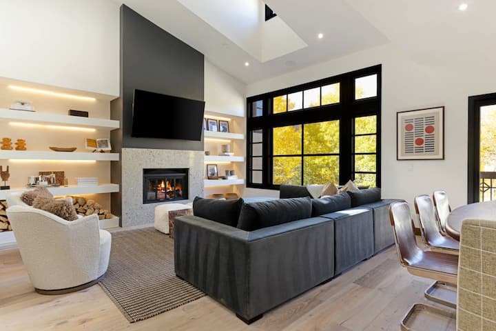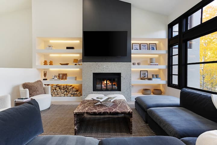 Модерен дом во Бивер Крик | Камин и живописен поглед
