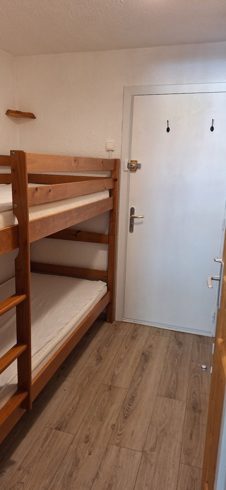 Целосно реновирано студио во центарот на Лес 2 Алпи. Се наоѓа во близина на сите продавници (пекара во подножјето на зградата, ресторани, продавници за изнајмување, пералница). Telemix of the Belle étoile и ESF се собираат пред станот. Спие 4: кауч на спуштање + планински агол со кревети на спрат. Југоисточен балкон со поглед на падините, безбедно скијачко шкафче. Опремена кујна (микробранова печка, машина за миење садови...) Самопријавување преку кутија за клучеви. Одлично за престој со семејството или пријателите