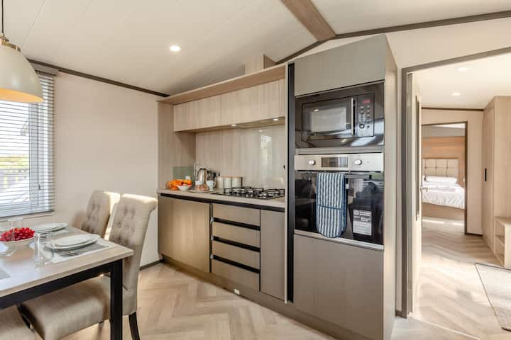 Уживајте во прекрасните глетки на заливот Холивел пред да влезете во светлиот и проветрен дневен простор/кујна/трпезарија со отворен план. По песочните авантури на плажа, си наточете заслужен пијалак и сместете се на удобниот кауч додека на паметниот телевизор гледате некоја серија. Има дури и електричен оган за постудени, пријатни вечери. Модерната кујна има сѐ што е потребно за готвењето да биде лесно. Пригответе вечера со морска храна користејќи локални производи од вашите патувања пред да седнете околу масата за вечера и да го прекршите лебот во текот на вечерите исполнети со смеа. Ходникот води до спална соба со два кревета, совршена за деца или пријатели, додека атрактивната спална соба со брачен кревет има сопствен туш и паметен телевизор. Стилската семејна туш-кабина го комплетира имотот.