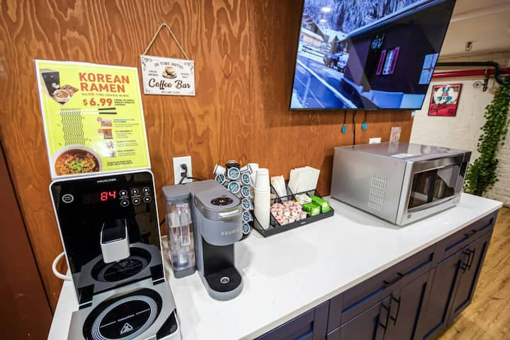 Со JG Time како вашата почетна база во Хелс Кичен, ќе бидете на неколку минути од Тајмс Сквер, Бродвеј, Музејот на модерна уметност, Рокфелер Центар и друго. Застанете во редицата кај блискиот киоск на Тајмс сквер за билети со попуст за претстава на денот на настанот или возете се со Citibikes по патеката покрај реката Хадсон. Скромно и без украси, совршено место за да ја фрлите торбата помеѓу настапите. Разиграните ѕидни графики додаваат допир на фантазија во собите.