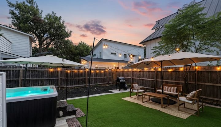 Добре дојдовте во вашиот дом далеку од дома во срцето на Остин! Нашата пространа куќа со 4 спални соби и 4 бањи е совршена за групи до 8 гости, нудејќи совршен спој на модерни луксузни удобности и удобни удобности. На само 2 милји од центарот на Остин, 2,3 милји од улицата Рејни и 1,5 милји од динамичниот ноќен живот на Источната 6-та улица, ова е идеално место за семејни одмори, групни патувања, одмор за викенд или подолги престои.
