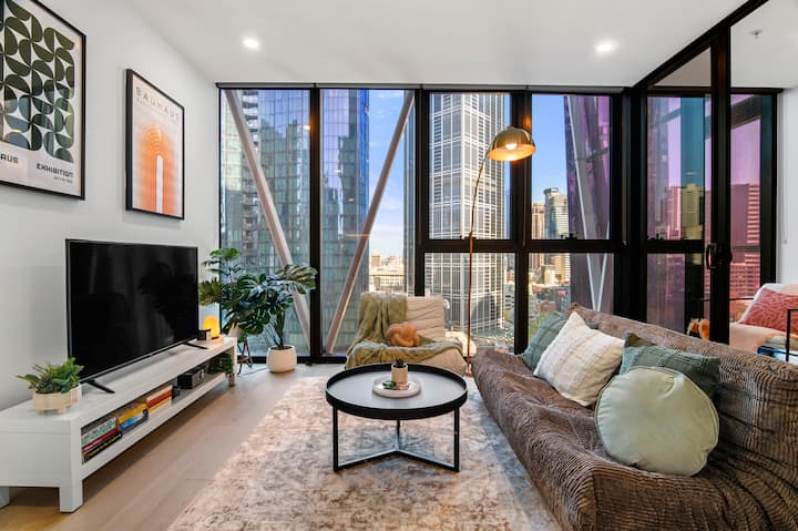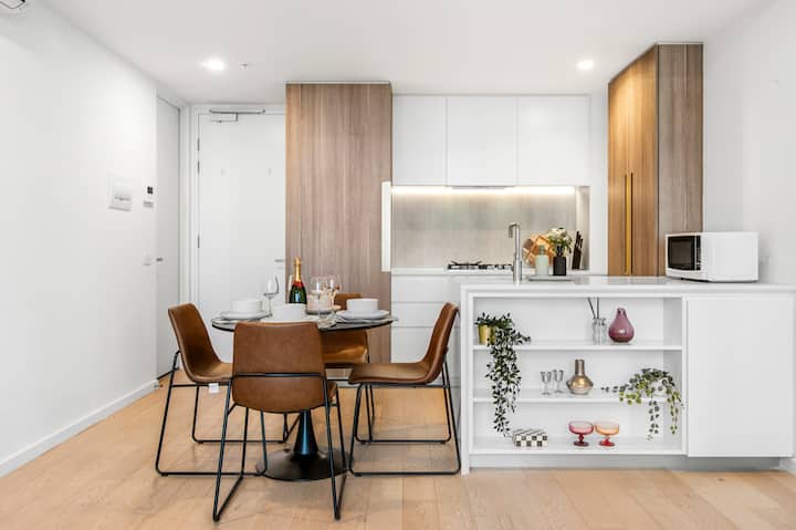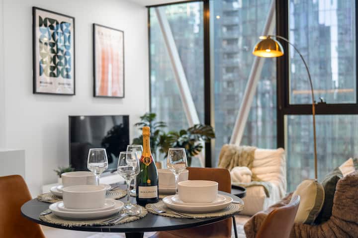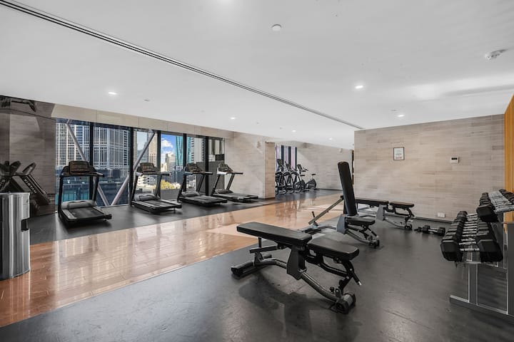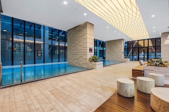 Модерен ретро стан во CBD |2 кревета 2 бањи| Базен, сала за вежбање, сауна