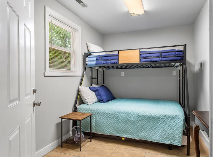 На горниот кат ќе ја најдете и главната спална соба, опремена со брачен кревет (широк 150-179 см), гардеробер и складиште за ноќна масичка и телевизор Roku со рамен екран. Сите спални соби вклучуваат чиста постелнина.