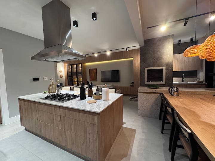 Кујната е комплетна и софистицирана, совршена и за тивок појадок и за сложени вечери. Гурманскиот простор има и скара на јаглен, идеална за опуштени собири со допир на софистицираност.
