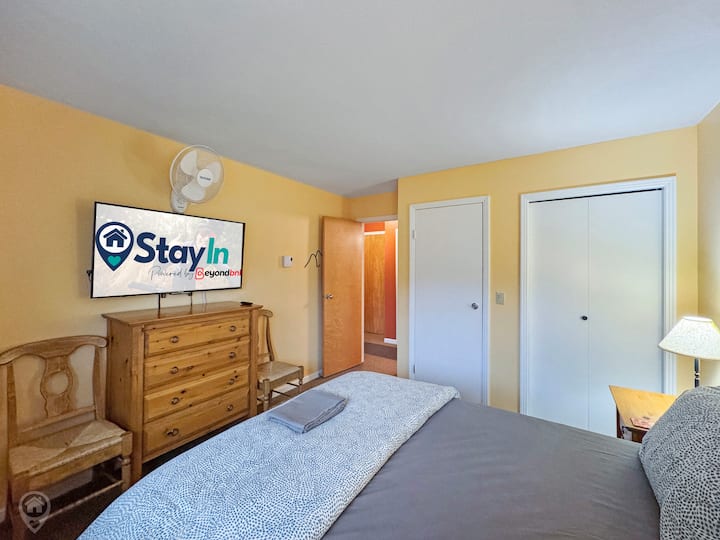Бањата нуди комбинација од када/туш, локално произведени производи за бањање, меки крпи и фен за коса, обезбедувајќи сѐ што ви треба за удобност и практичност. Спалната соба има брачен кревет (широк 150 – 179 см), комода, телевизор со Roku, вентилатор и доволно простор во плакарот, што ви дава мирно прибежиште за добар ноќен сон.