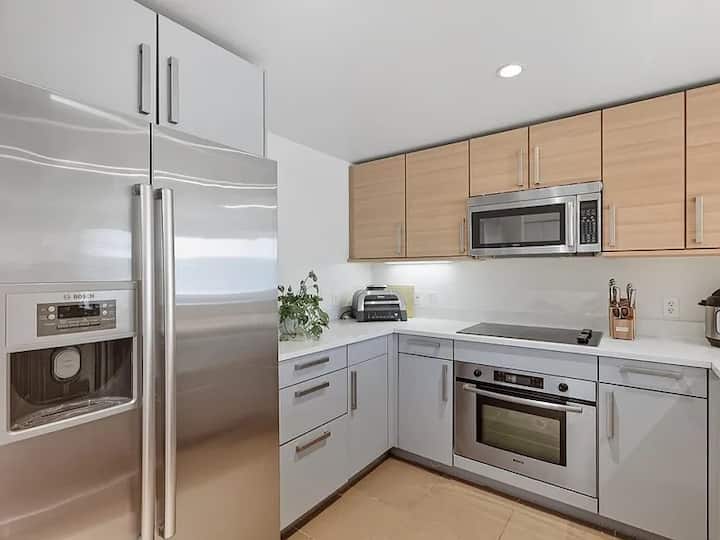 Bright 1BR w/ Balcony, Private garage + Amenities
