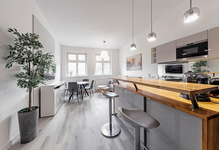 RentPlanet е лидер во управувањето со станови во многу полски градови. Од 2016 година, ги комбинираме хотелските стандарди со приватноста на модерните, целосно опремени ентериери. Далечинското пријавување обезбедува брзо пристигнување, а линијата за помош која е достапна деноноќно нуди постојана поддршка. Без оглед на целта на вашето патување, ви гарантираме удобен престој на високо ниво.
