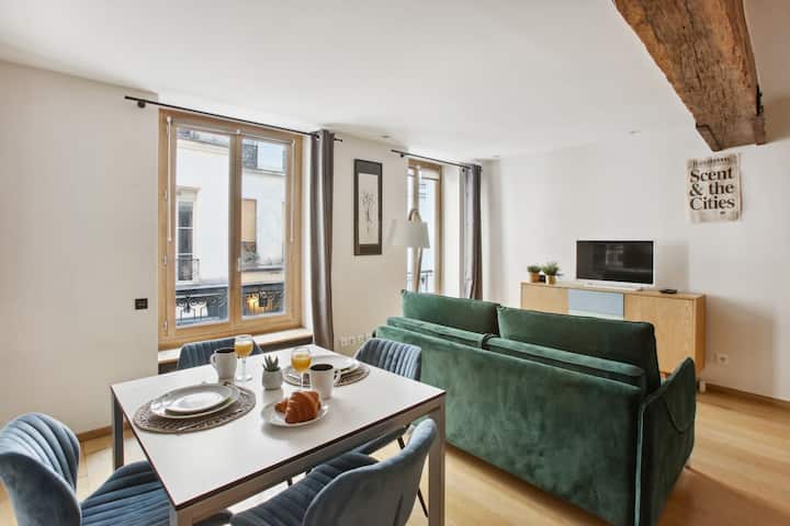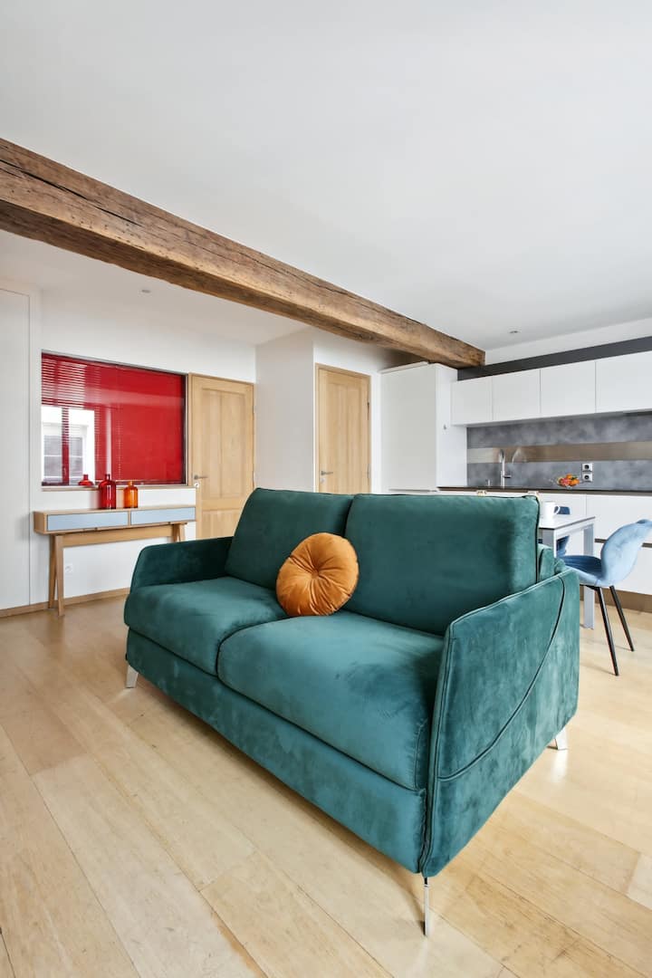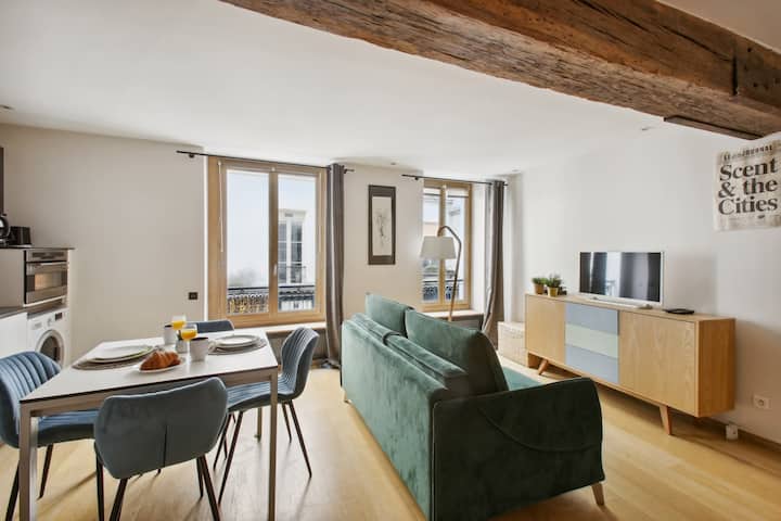 Уживајте во престојот во срцето на париската област Сен Жермен де Пре со овој светлечки стан со една спална соба и површина од 50 квадратни метри кој се наоѓа на 1 кат од безбедна станбена зграда без лифт. Самопријавување почнувајќи од 15:00 ч. со земање клучеви од блиската продавница. Достапен е Wi-Fi, одличен и за работа и за одмор. Потребен е депозит за штета што може да се врати, во целост во согласност со правилата на Airbnb.