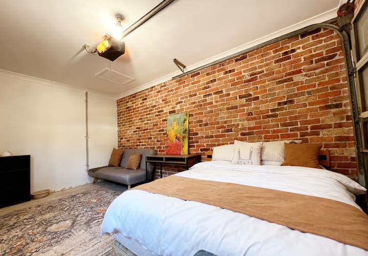 Соба со брачен кревет во гаража во Бурвуд (гаража и заедничка бања)