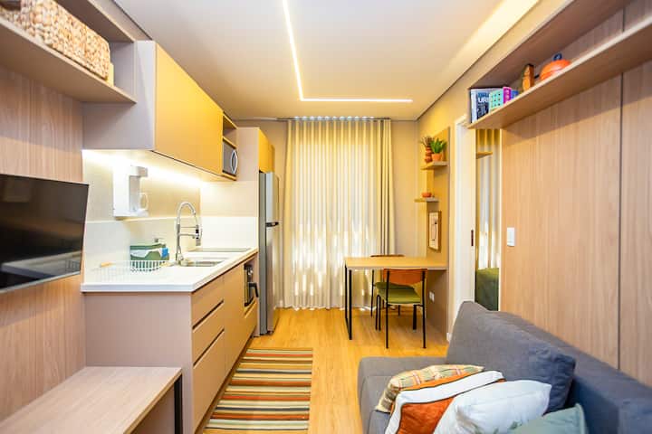 Стан со 1 спална соба, со гаража во центарот на Куритиба