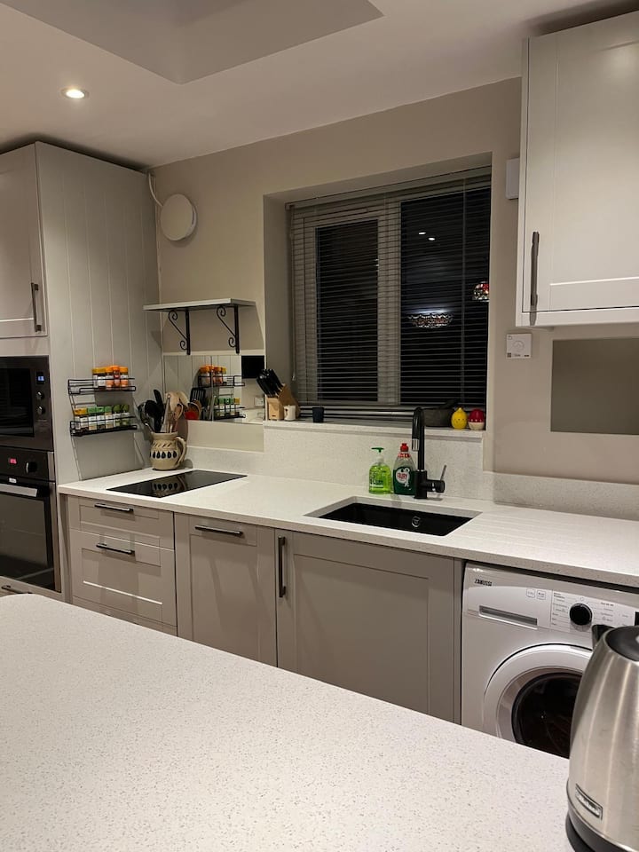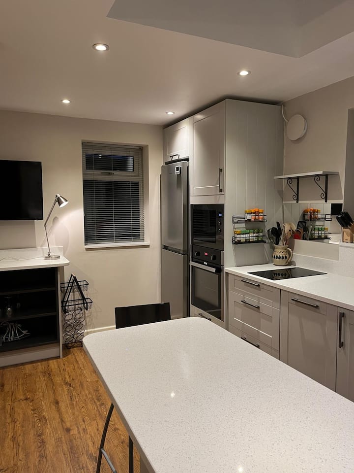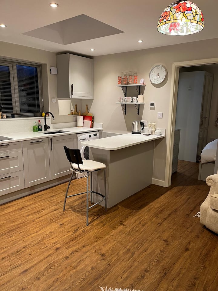 Јас сум професионалец со полно работно време, а исто така и мојот партнер. Ја претворивме нашата голема одвоена двојна гаража во помошен објект изграден за таа цел во 2024 година. Откако беше завршен, обезбеди привремен самостоен дом за нашата постара мајка, која сега се пресели во нов сопствен дом. Дополнителниот објект е изграден според многу висок стандард и ги има сите вообичаени удобности, вклучувајќи и камин со дрва, целосно функционална кујна и прекрасна бања со туш-кабина во собата за да ви го направи престојот што е можно попријатен.