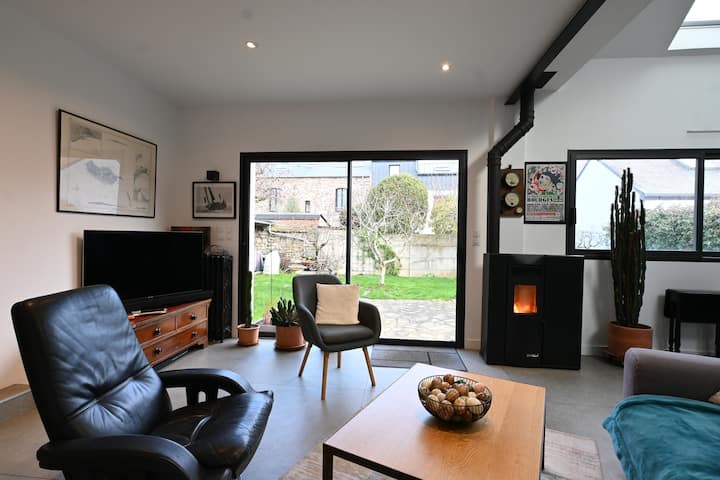 Идеално лоцирана, куќата е совршена база од која можете да го истражите Рен, топол, динамичен бретонски град полн со карактер.Историскиот центар, културата, гастрономијата и природата се брзо достапни пеш или со јавен превоз.