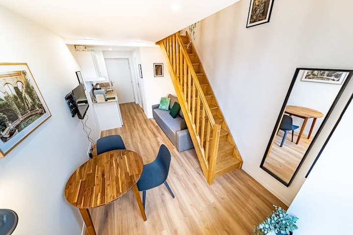 Добре дојдовте во овој удобен мезанин дуплекс, лоциран на тивка улица во Ла Мулатиер, во близина на Лион. Совршен за самостојни патници или парови кои бараат мир и тишина со брз пристап до центарот на градот, овој стан ги комбинира практичноста и удобноста во мирен амбиент.