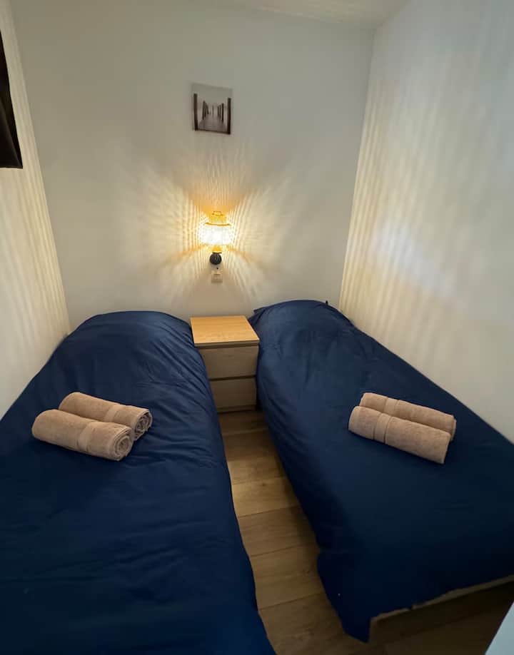 - Спална соба со два единечни кревета кои може да се спојат во голем брачен кревет (180 x 190 см)