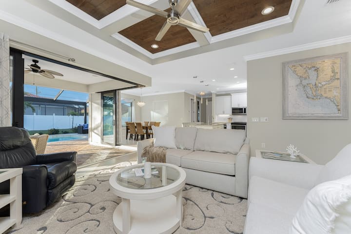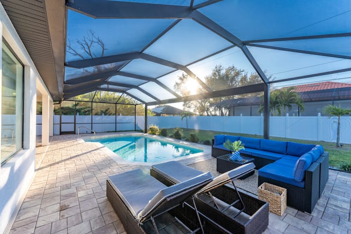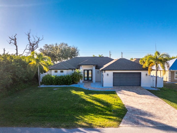 Sunstead at South Gulf Cove 🌴☀️ е модерно прибежиште погодно за миленици со приватен базен со греење во тивко соседство во Порт Шарлот. Уживајте во просторот за живеење со отворен концепт, целосно опремената кујна и заштитениот веранда совршени за опуштање. Може да се сместат 6 лица во главна спална соба со брачен кревет (широк 180-220 см), втора спална соба со брачен кревет (широк 180-220 см) и спална соба со брачен кревет (широк 150-179 см). Погодно за миленици со одобрение (најмногу 2 кучиња, под 9 кг, кои не се митарат). Блиску до плажите на заливот, возење со чамци, јадење и Бока Гранде. Професионално управувано за престој без стрес.