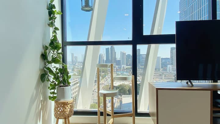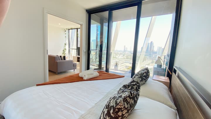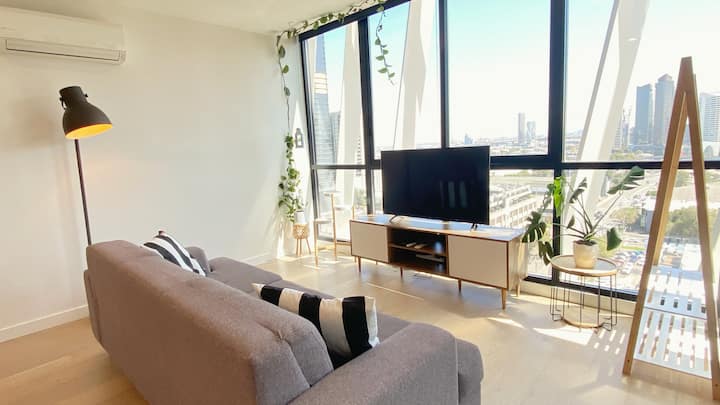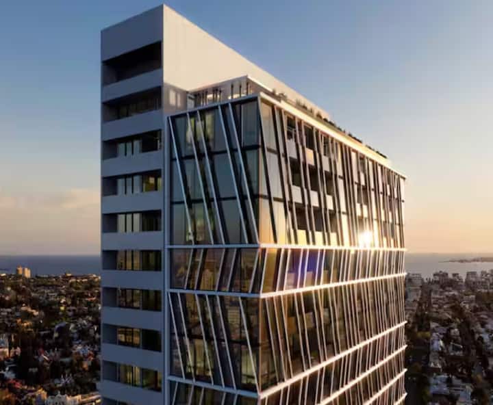 Модерно прибежиште во јужен Мелбурн со поглед кон хоризонтот