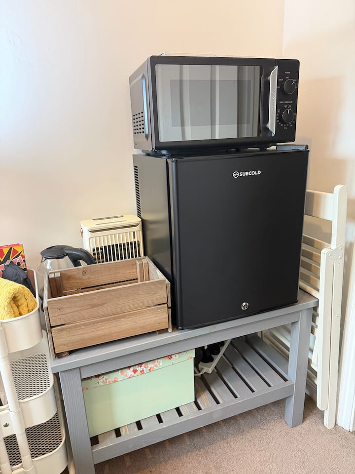 Фрижидер Mini fridge in the room.