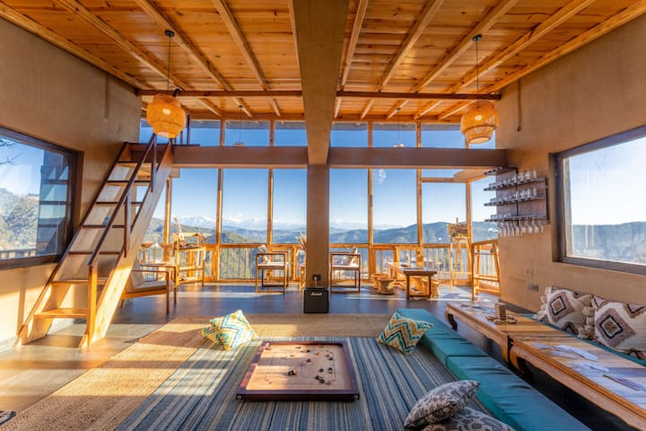 🏛️ Kriti – Салата за рекреација е дизајнирана да ги привлече сите со својата топлина и просторност. Обрамена со високи стаклени прозорци кои се отвораат кон величествениот поглед кон Хималаите, оваа просторија станува природен простор за дружење – каде што разговорите траат, музиката наоѓа свој пат до собата, креативноста тивко се развива, а времето поминато заедно се чини како да не поминува.