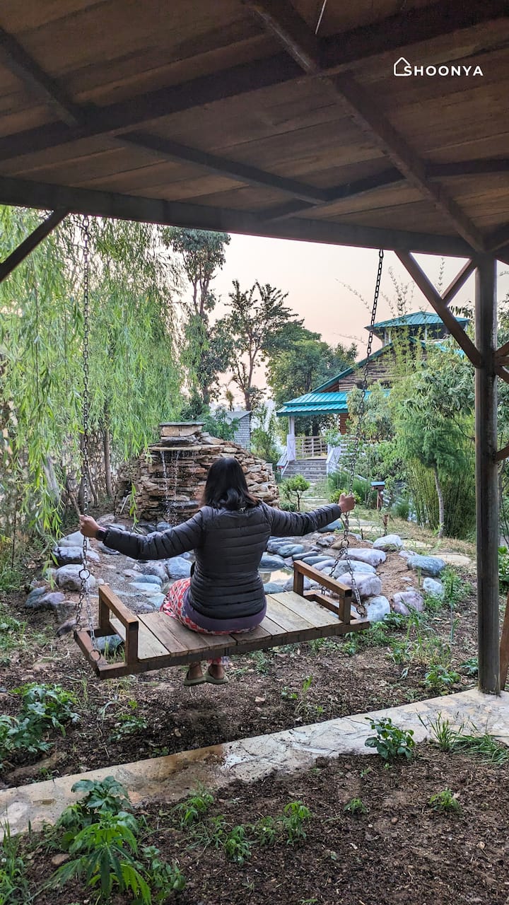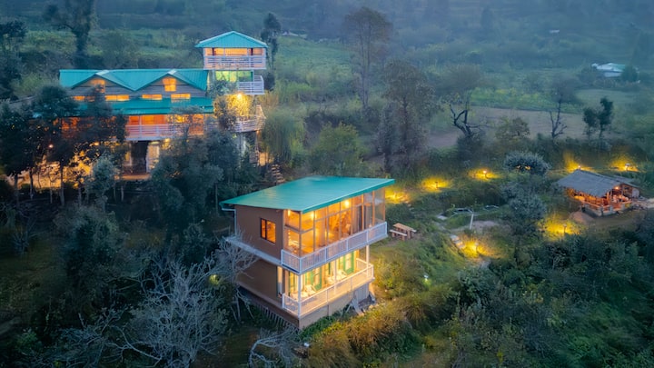 Природно, пријатно планинско сместување на фарма на надморска височина од 2.130 метри во ридовите Муктешвар во Кумаон, со неспоредлив поглед кон величествените снежни врвови на Хималаите, кој се протега низ овоштарници, терасирани полиња и огромната долина што се простира токму пред вас.