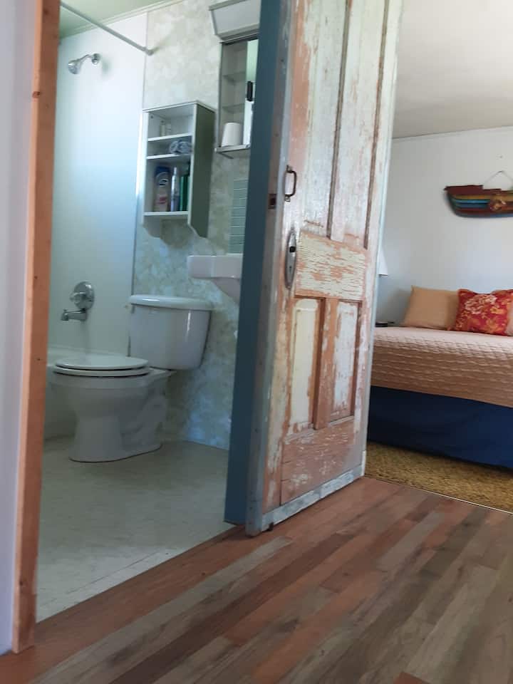 Ние сме уметници и реновирачи по душа и сакаме да ја вклучиме уметноста во мебелот на нашиот дом за другите да уживаат и да искусат. Нашиот дом е опкружен со 22 хектари шико грмушки и поглед на планината Бланка ...Нашата минијатурна куќа е околу 400 квадратни стапки.