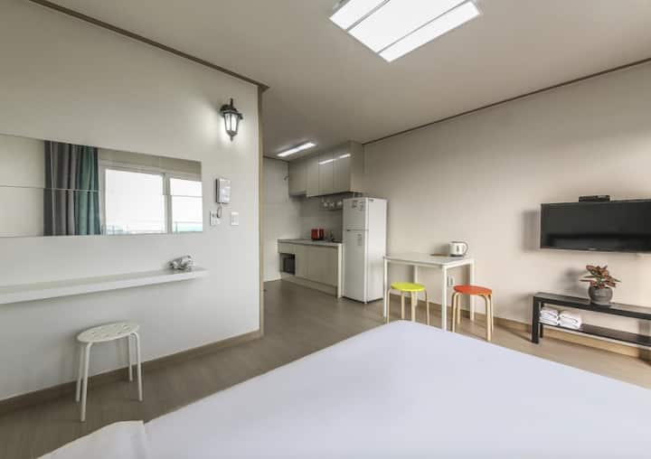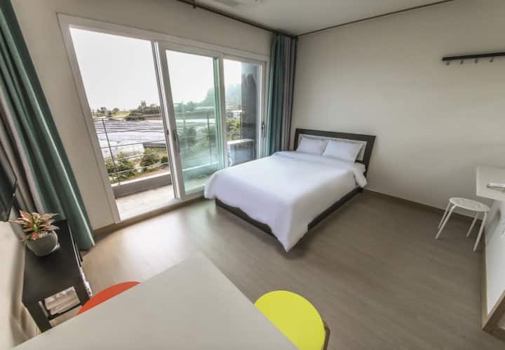 Jeju Su Pension се наоѓа во прекрасно село Daepyeong во близина на туристичкиот комплекс Jungmun.