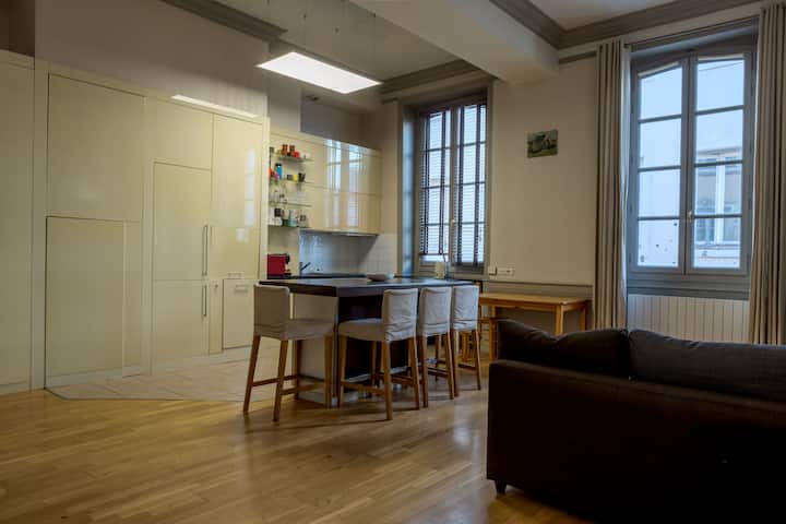 Дозволете си да бидете заведени од овој шармантен дуплекс во срцето на Лион 1ер и резервирајте го вашиот престој сега!