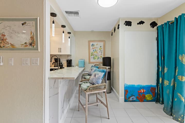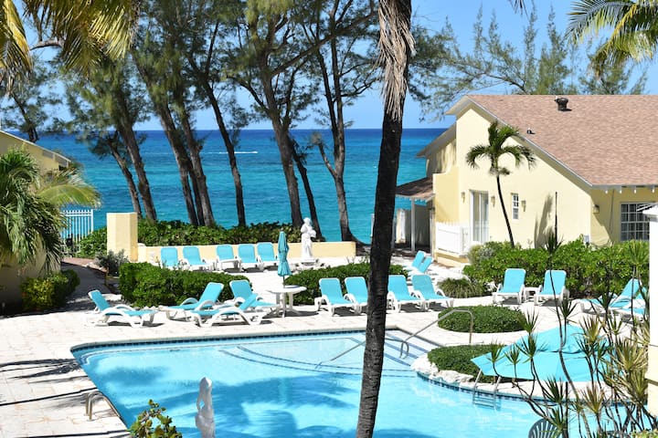 Замислете да се разбудите со нежната симфонија на океанските бранови, нивните ритмички шепоти кои ве успиваат во состојба на спокојно блаженство. Влезете во вашиот приватен поплочен двор, каде што соленото ветре ја бакнува вашата кожа и тиркизниот простор на Карибите бескрајно се протега пред вас. Ова е вашето ново засолниште - неодамна реновирана вила со 2 спални соби и 2 бањи на плажа, сместена на една од највпечатливите плажи во светот, веднаш до луксузниот резорт Four Seasons на Парадајз Ајленд. Добре дојдовте во вашето парче рај по пристапна цена.