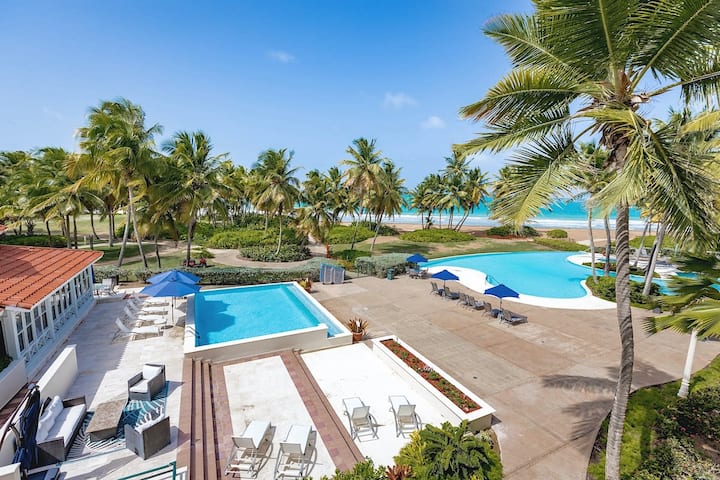 Sea Star Villa е неодамна реновиран стан со 2 кревети и 2 бањи на плажа кој се наоѓа во Wyndham Rio Mar Grand Resort во Рио Гранде, Порторико. Ќе ви се допадне погледот кон океанот од двете тераси, дневната соба и една од спалните соби. Кондоминиумот има 3 базени на брегот на океанот и џакузи, сите во непосредна близина. Плажата е преку базенот и има фотелји достапни за користење од гостите. Хотелот Wyndham се наоѓа на 5 минути пешачење по плажата. Таму ќе најдете различни ресторани, барови и спа центар. Надвор од резортот, се наоѓате на 5 минути возење од националната дождовна шума Ел Јунке, на 10 минути од повеќе од десетина опции за јадење и на кратко 20-минутно возење до Фахардо и бродовите до соседните острови кои поаѓаат од неговите пристаништа. Распоредот со две кревети, две бањи на Sea Star и непосредна близина до 3 базени и плажа долга еден километар го прават идеален имот за парови и семејства кои бараат совршен одмор на Карибите без проблеми.