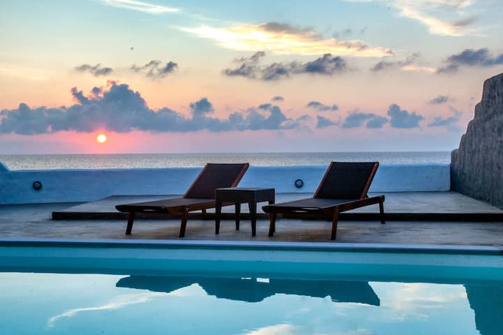 - Сместувања за изнајмување со базен за одмор во Санторини