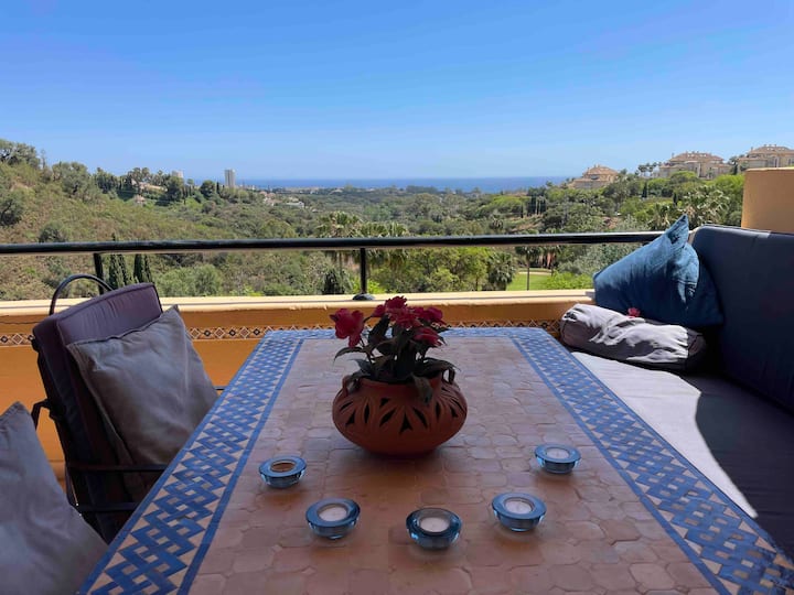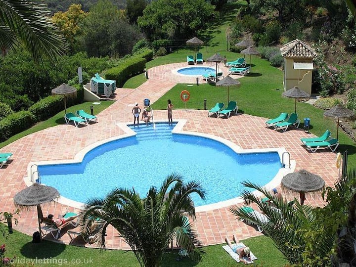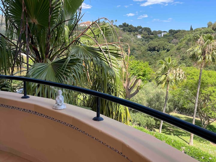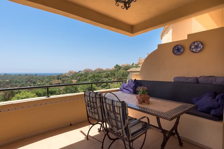 Уживајте во два базена, голем приватен балкон, брз Wi-Fi и лесен пристап до плажите, продавниците, рестораните и терените за голф во Марбела.