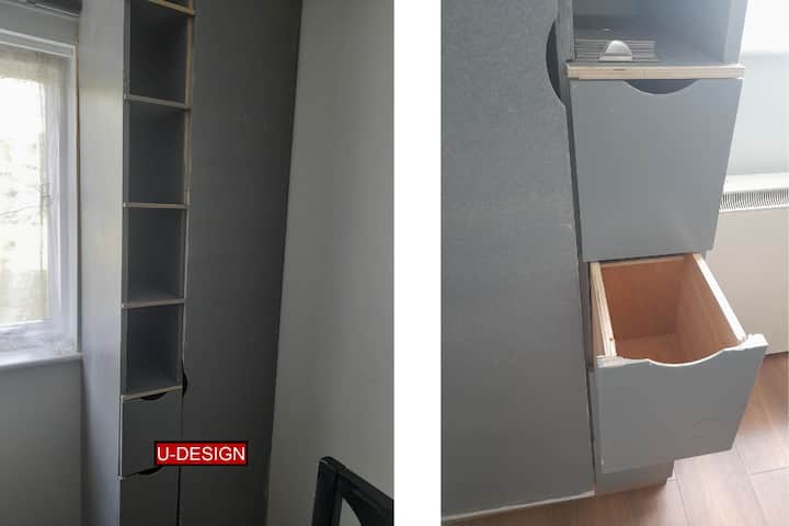 Неодамна поставивме гардероби од подот до таванот за складирање.