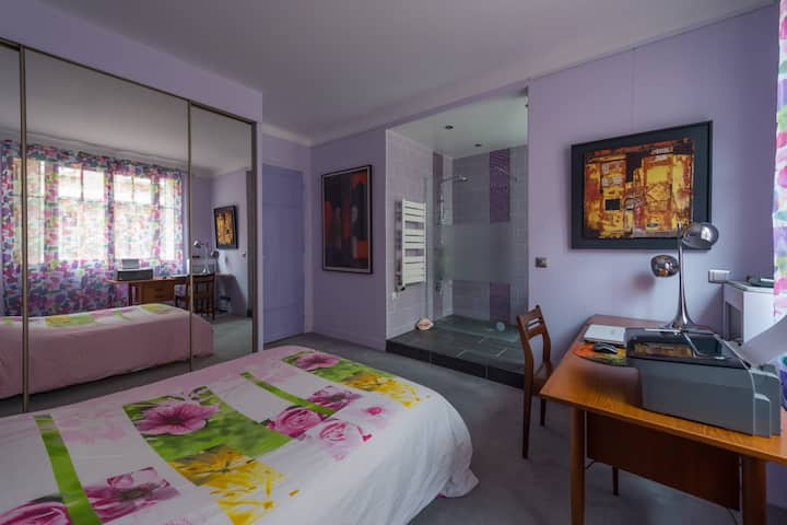 Со задоволство ќе ви посакам добредојде во станот каде што живеам во текот на целата година и ќе ве советувам за сите уметнички вести во Париз - театар, изложба, уметнички галерии... најдобрите ресторани и модерни места во главниот град. Дилер на антиквитети со болви во Сент Оуен. Ќе ви ги дадам сите информации за да го откриете најголемиот пазар за антиквитети на отворено во светот. Мора да се види кога сакаме уметност!
