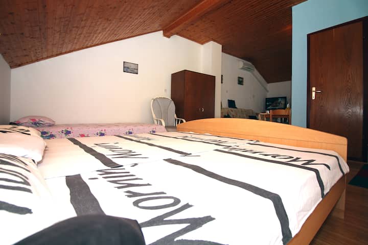 1 брачен кревет (широк 150-179 см), 1 единечен кревет (широк 80 – 109 см)