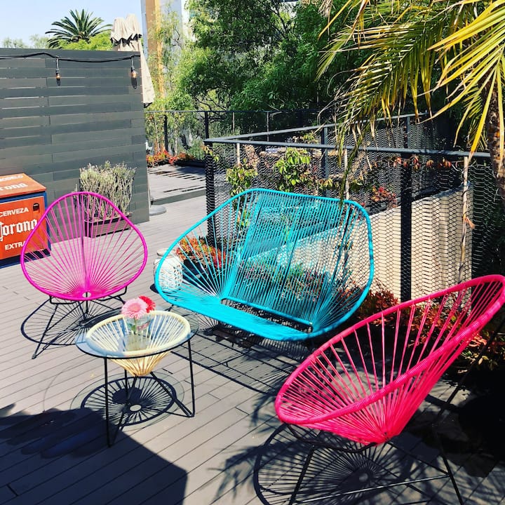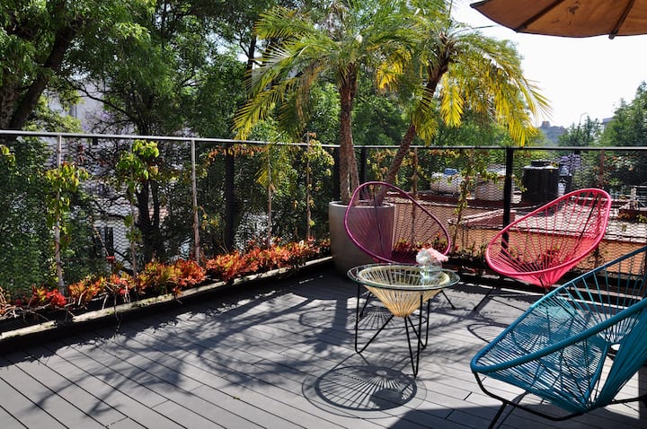 - Сместувања за изнајмување со простор за седење на отворено за одмор во Mexico City