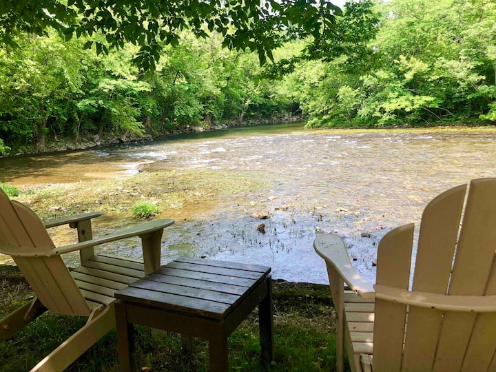 Добре дојдовте во вашиот дом далеку од дома, сместен на брегот на Малата река! Можете дури и да го слушнете брзањето од вашата соба, која е реставрирана штала од 1926 година или 30-годишна преуредена гостилница. Над имотот од 2 хектари има мал водопад покрај кој може да се опуштите и да прочитате книга. Изберете го вашето место покрај реката или скокнете директно ако сакате. Има две скалила што ќе ве одведат до реката за да намокрите линија или да лебдите во цевка. Има доволно столови за оние кои се помалку зрели! Или ако седите на тремот со поглед на реката и читате книга е поголема од вашата брзина, има неколку од кои може да изберете во вашата соба. Долгиот ден за опуштање може да ве натера да огладнете, па имам скара на имотот за попладневна скара или може да седнете околу автентичниот огниште за павлака.