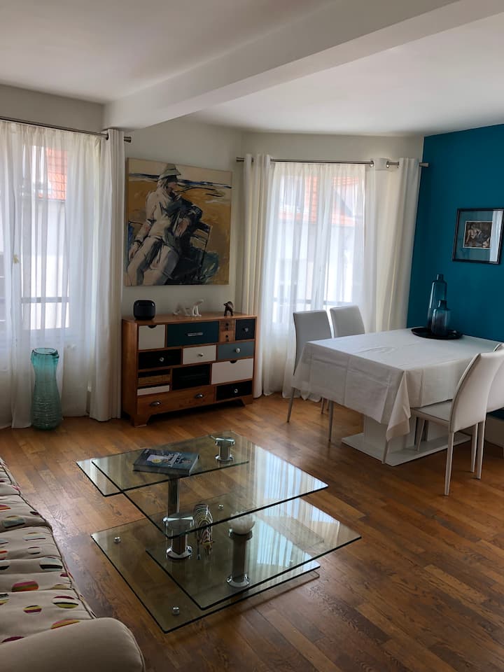 Целосно опремен стан без 2 ч покриен паркинг простор, во близина на целиот транспорт,воз,трамвај,RER, метро