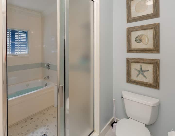Ќе ви се допадне неверојатната природна светлина на кондоминиумот со неговите француски врати и прозорци од подот до таванот, како и луксузни завршетоци. Уживајте во удобноста на овој аголен објект на првиот кат со поглед кон паркот Серулеан. Единицата вклучува 6 стола за плажа со ранец Tommy Bahama, 2 големи спални соби со брачни кревети, кауч за спиење со брачен кревет (широк 150-179 см) и соба на спрат со 2 двокреветни кревета.